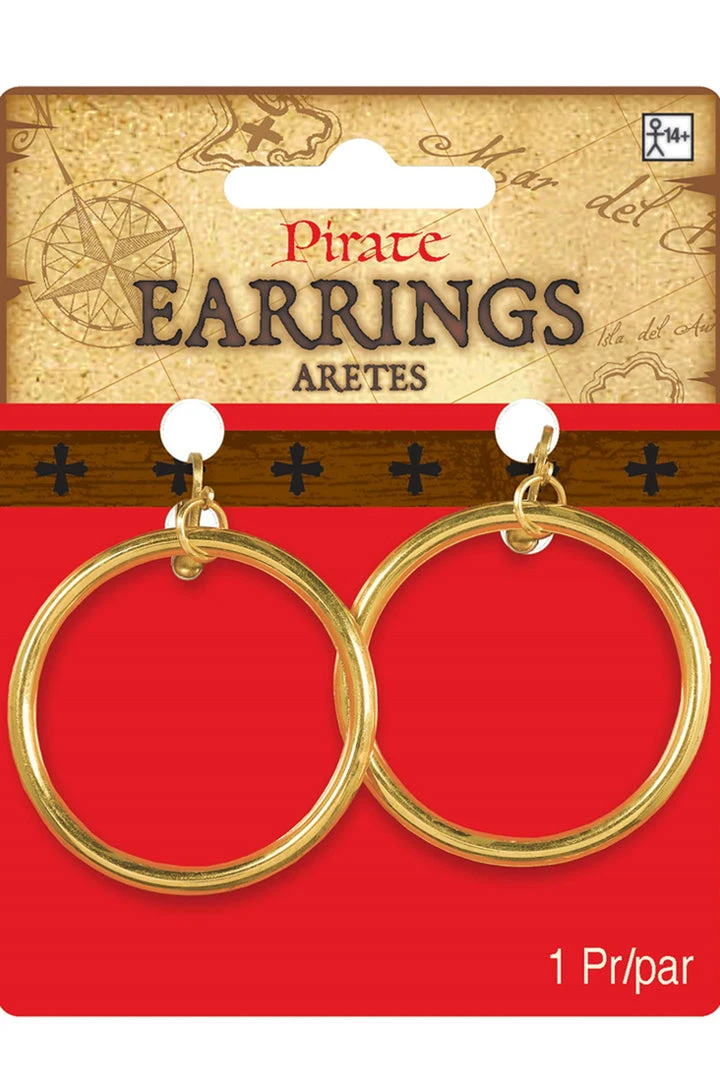 Accessorize your DIY pirate costume with these Earrings Pirate Hoops that feature faux gold plated hoops that dangle from spring ear-backings.Â