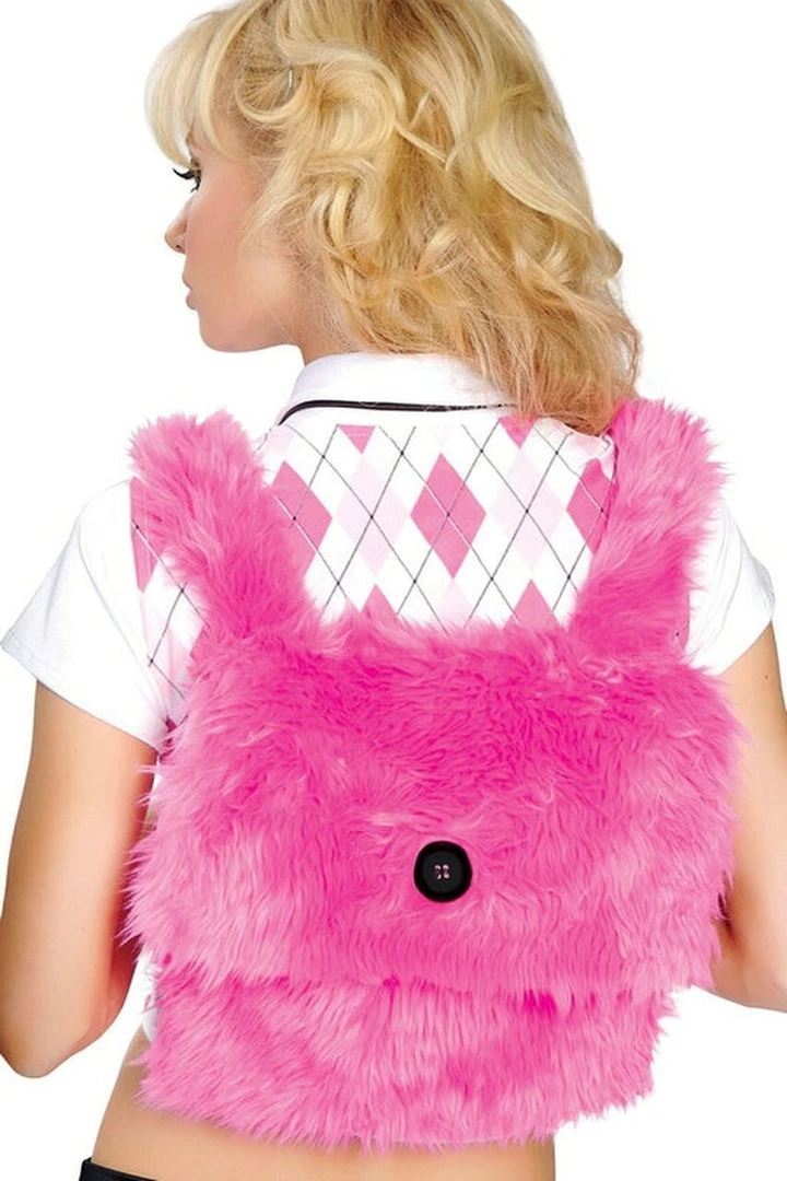Faux Fur Schoolgirl Back Pack with Middle Button. Made in USA,