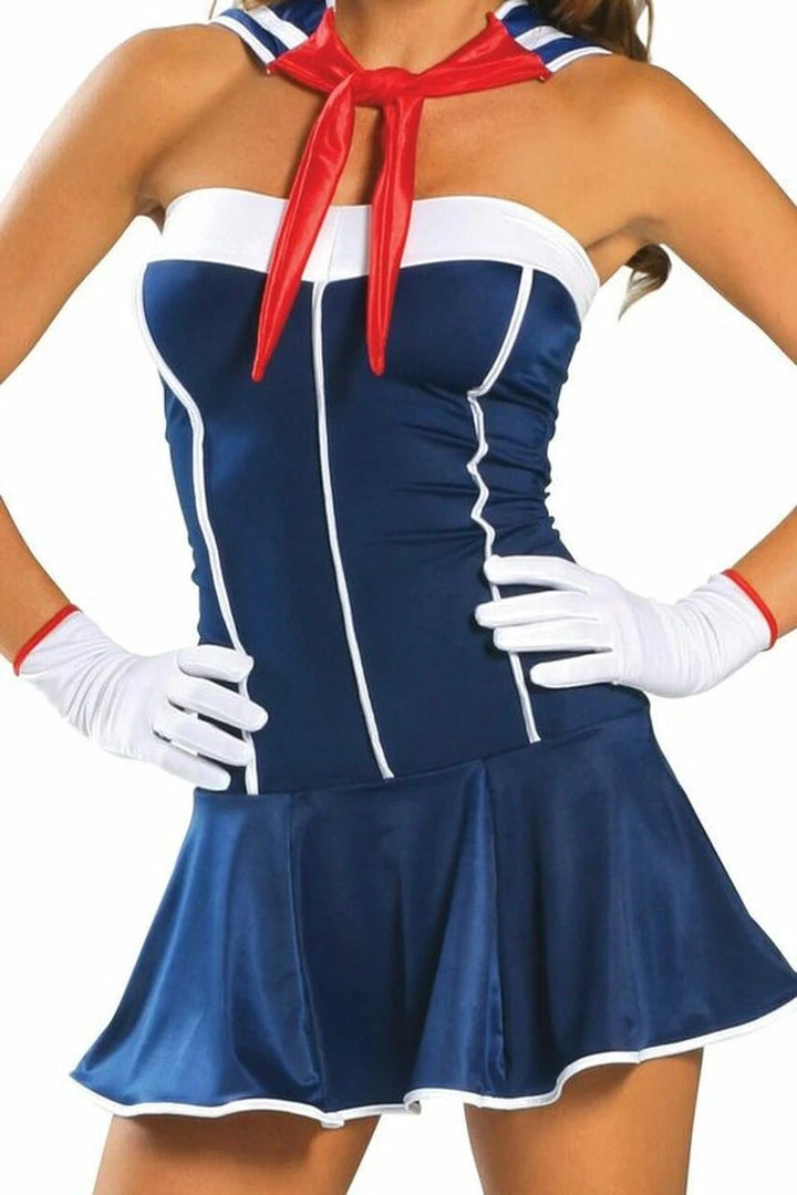 This sexy Anchors Away Sailor Costume probably is one that most would see sailors wearing on a naval vessel. It surely would add a little spice to that ship and to those sailing along with you on the seven seas seeing the world. This hot costume will certainly make you the talk of the party and some party revelers will surely want to escape away on a private vessel with you.